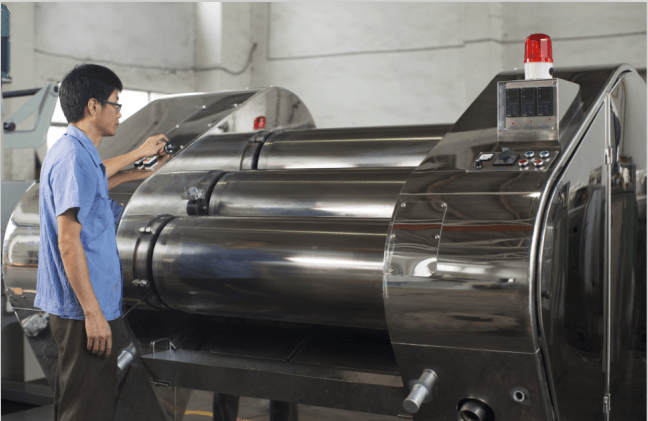 本機(jī)采用國(guó)內(nèi)獨(dú)創(chuàng)集成板塊油路方式,由電磁閥來(lái)控制該機(jī)的工作狀況,壓緊與松開(kāi)響應(yīng)速度快,壓力均勻,控制方便。研磨物料的各種細(xì)度通過(guò)調(diào)節(jié)壓力獲得;油路采用特制接頭,確保不泄漏,并方便維護(hù)與拆裝;輥筒采用專(zhuān)用特殊合金材料澆鑄,表面具有高強(qiáng)度和耐磨性。