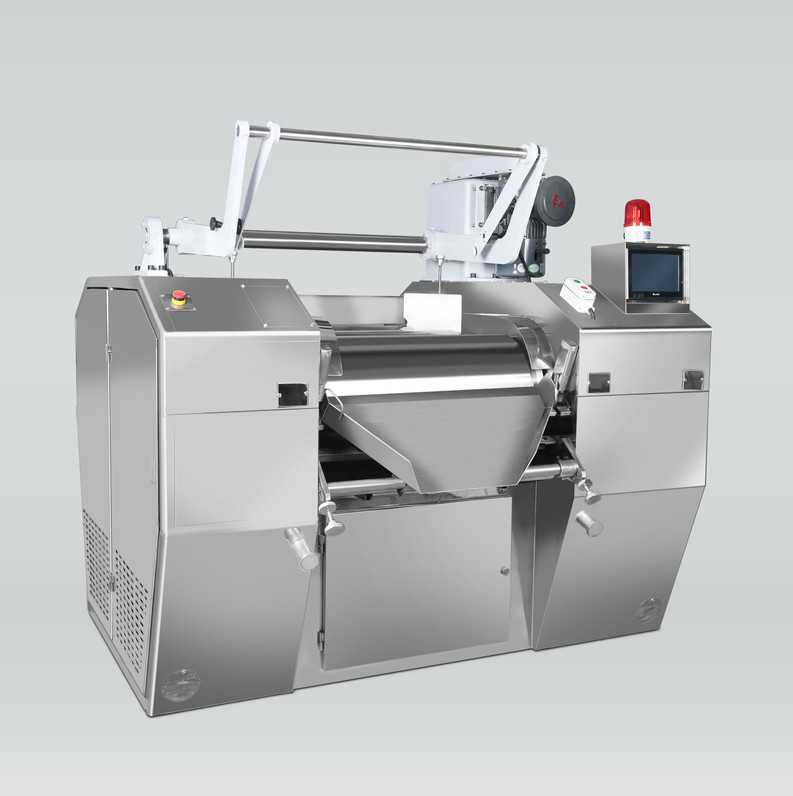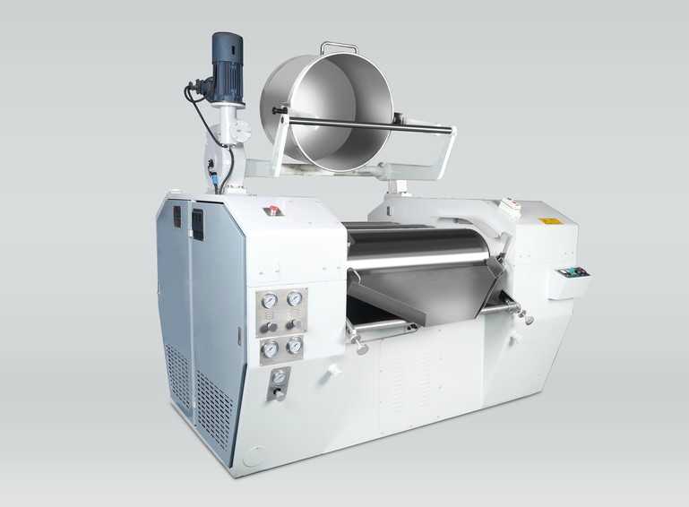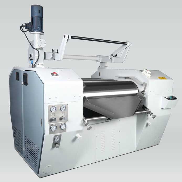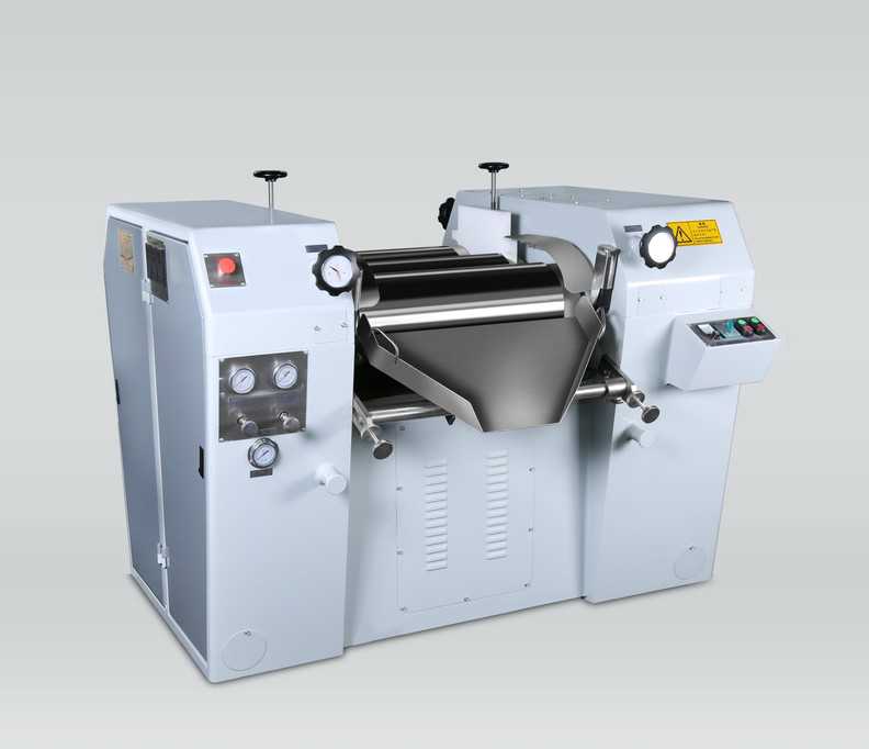 該機(jī)型最大優(yōu)點(diǎn)是采用變頻調(diào)速,并加裝有機(jī)械(或液壓)間隙的調(diào)整裝置,在運(yùn)行中可不脫開(kāi)輥筒的情況下任意調(diào)整間隙,使其達(dá)到一個(gè)最佳的狀態(tài)。以便加工各種高、中、低粘度的產(chǎn)品,產(chǎn)能是普通機(jī)的4倍左右。